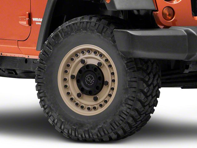 Application. This Black Rhino Armory Desert Sand Wheel; 16x8, with a backspace of 4.106 Inch, 104.3mm; and bolt pattern of 5 x 127mm (5 x 5-Inch), is designed to fit the 2007-2018 Jeep Wrangler JK . The precise specifications of the wheel ensure proper alignment and driving stability, perfectly complementing the vehicle's model. Sold individually.
