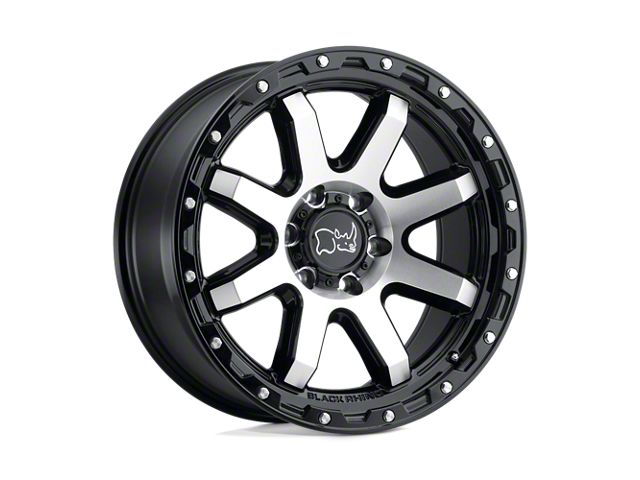Black Rhino Coyote Gloss Black with Machined Face and Stainless Bolts Wheel; 18x9 The Black Rhino Coyote Gloss Black with Machined Face and Stainless Bolts Wheel combines a sleek, sophisticated design with premium construction that enhances the visual appeal and complements a wide range of vehicle styles. This wheel is perfect for those seeking to make a bold statement while maintaining elegance and robustness.