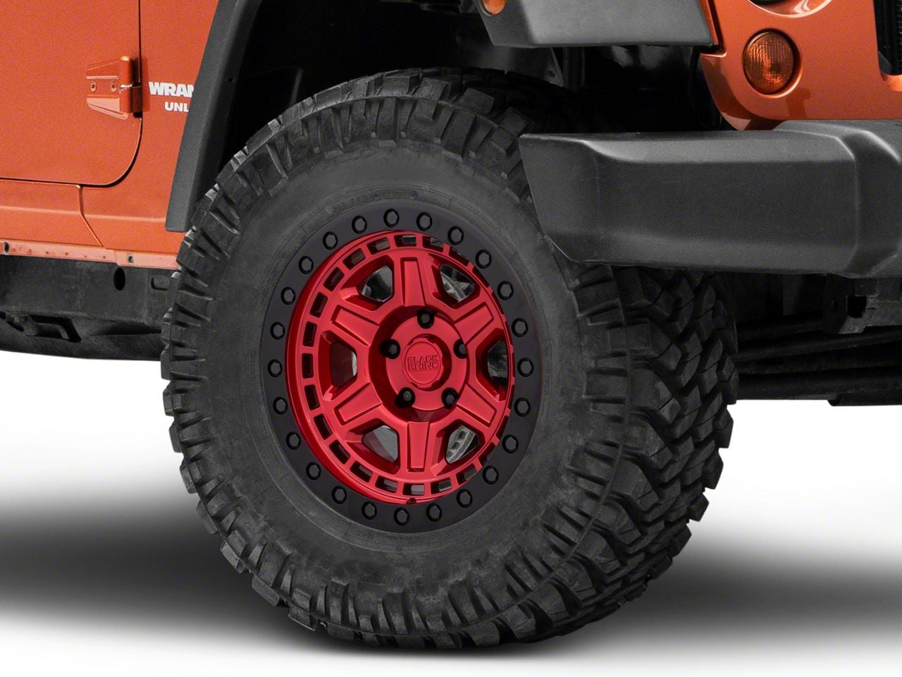Application. This Black Rhino Reno Candy Red with Black Bolts Wheel; 17x9 with a backspace of 4.292 Inch, 12009.1mm and bolt pattern of 5 x 127mm (5 x 5-Inch) ensures impeccable alignment and driving stability. It's designed to fit the 2007-18 Jeep Wrangler JK models, sold individually.CA Residents: WARNING: Cancer and Reproductive Harm - www.P65Warnings.ca.gov