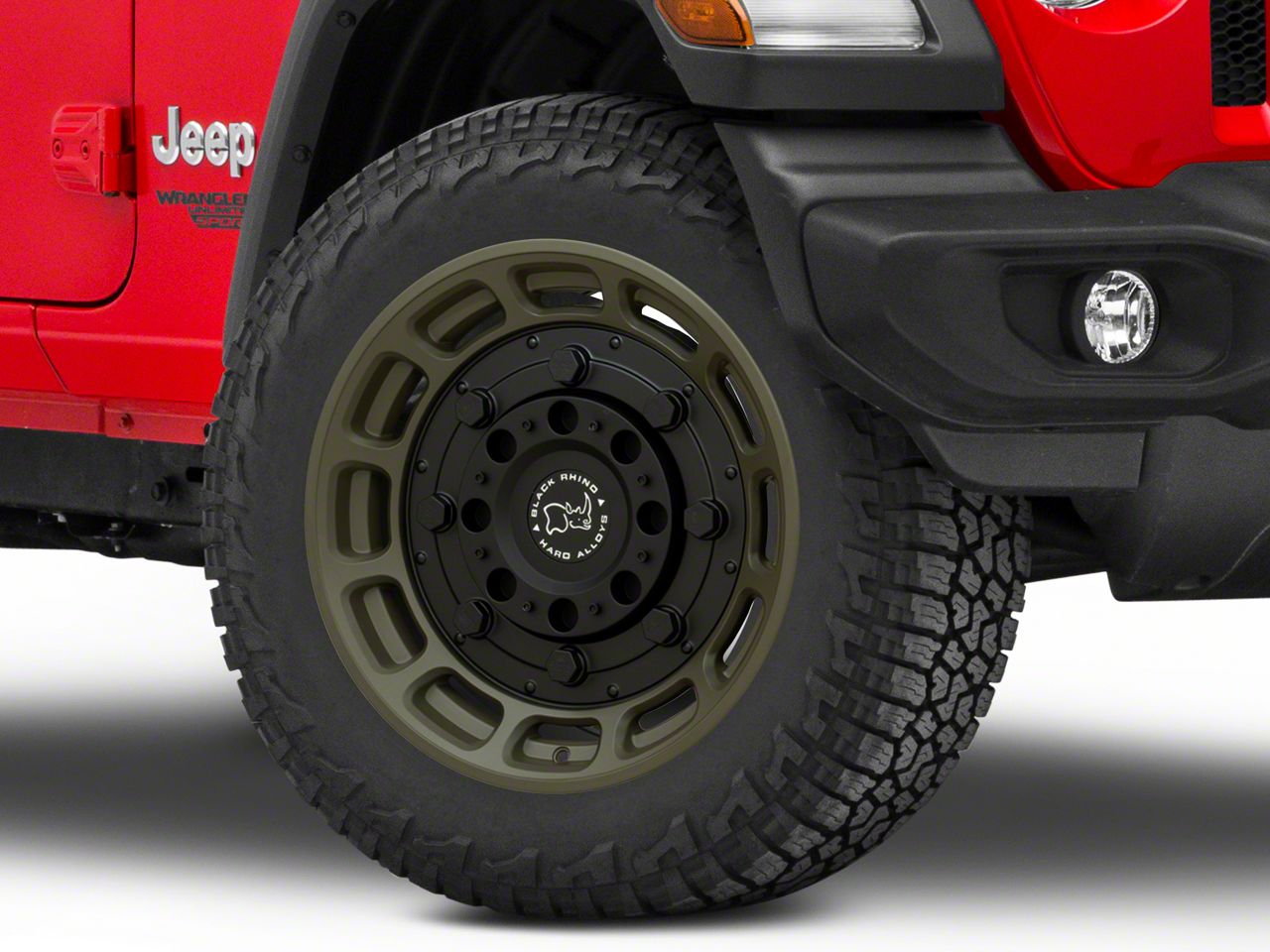 Application. This Black Rhino Warthog Matte Olive Dab Green with Black Center Wheel; 20x9.5 with a backspace of 4.542 Inch, 115.4mm and bolt pattern of 5 x 127mm (5 x 5-Inch) ensures optimal alignment, unparalleled driving stability, and an impeccable fit with your vehicle. It is designed to fit the 2018-2026 Jeep Wrangler JL models. Sold individually.