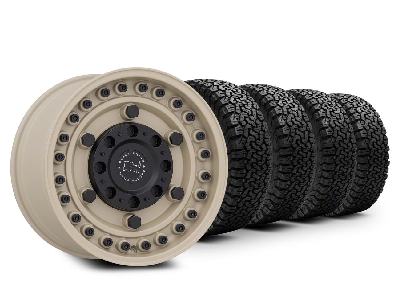 Mounted and Balanced Wheel and Tire Kit. This wheel and tire combo kit features (4) 17x9 Black Rhino Armory Desert Sand 6-Lug Wheels and (4) BF Goodrich All-Terrain T/A KO 265/70R17 tires that have been put together into an easy to buy kit that arrives to your door already mounted and balanced ready to be installed on your vehicle.