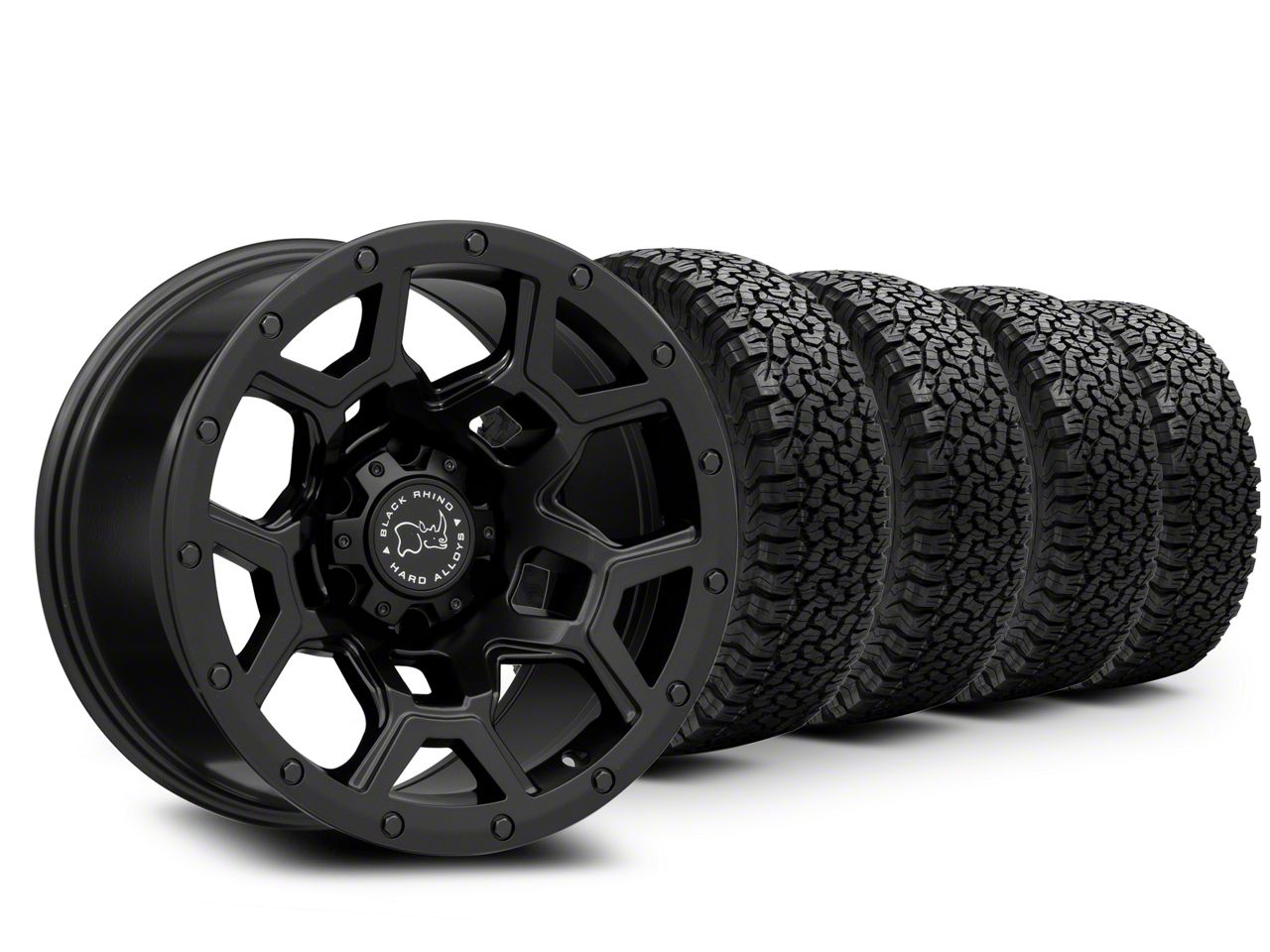 Mounted and Balanced Wheel and Tire Kit. This wheel and tire combo kit features (4) 17x9 Black Rhino Overland Matte Black 6-Lug Wheels and (4) BF Goodrich All-Terrain T/A KO 265/70R17 tires that have been put together into an easy to buy kit that arrives to your door already mounted and balanced ready to be installed on your vehicle.