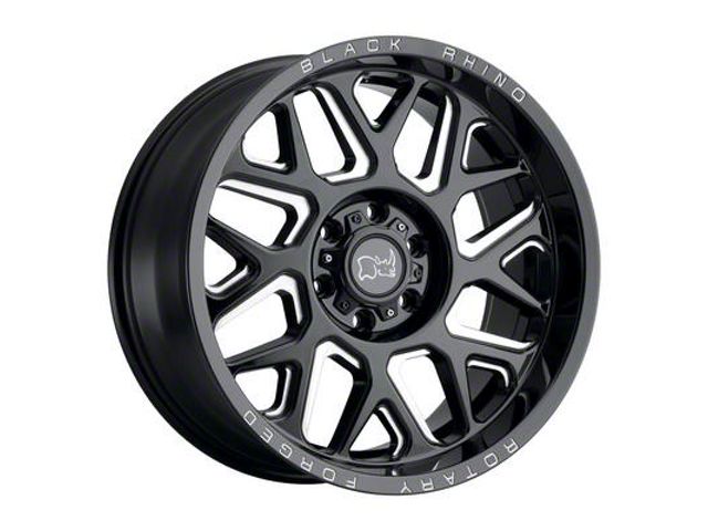 This 20x11.5 Black Rhino Reaper Gloss Black Milled 6-Lug Wheel is completed in a high-quality gloss black finish with steel milled accents that will create a striking appearance. There's a durable clear coat that protects against driving hazards.