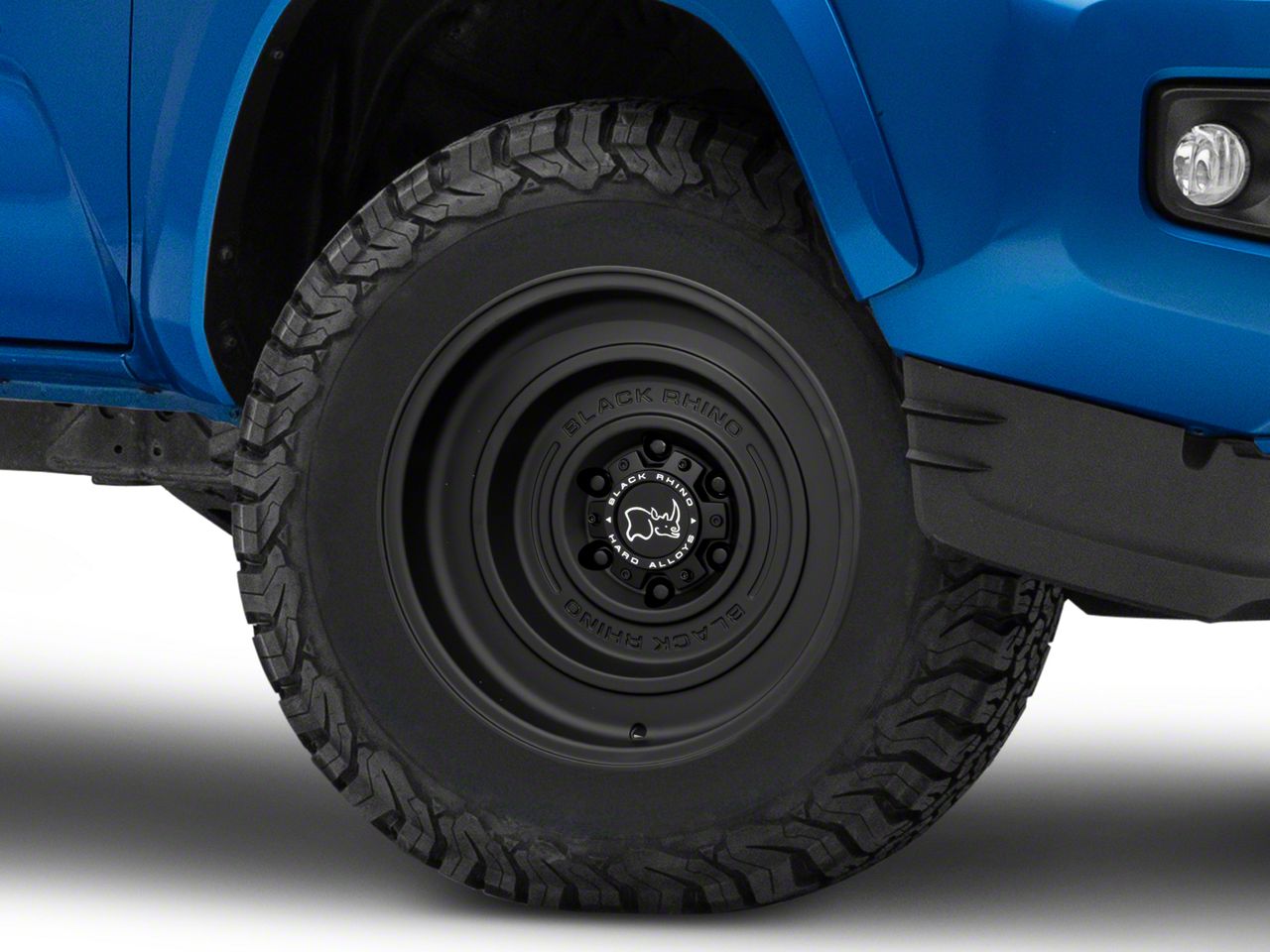 Application. This Black Rhino Solid Matte Black 6-Lug Wheel; 17x9.5; -12mm Offset with a backspace of 4.778 Inch, 121.4mm; and bolt pattern of 6 x 139.7mm (6 x 5.5-Inch), contributes to alignment, driving stability, and ensures a perfect fit with the vehicle model. Designed to fit the 2016-2023 Tacoma. Sold individually.