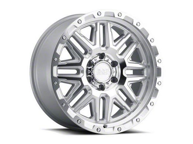 The 20x9 Black Rhino Alamo Gloss Silver 6-Lug Wheel comes with a heavy-duty fine silver finish which gives your truck a striking accent. This stunning finish has been engineered to be impervious to rust and other damaging effects of corrosion.