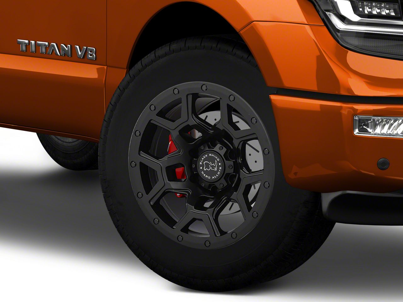 Application. This Black Rhino Overland Matte Black 6-Lug Wheel; 20x9.5; 6mm Offset, with a backspacing of 5.487 Inch, 139.4mm and bolt pattern of 6 x 139.7mm (6 x 5.5-Inch), ensures precise alignment and stable driving. Designed to fit 2017-2024 Titan models, this wheel is sold individually.