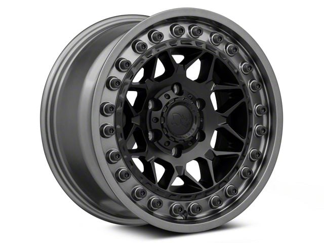 The 20x10 Black Rhino Alpha Matte Black with Gunmetal Lip 6-Lug Wheel; 20x10; -18mm Offset is completed in a high-quality black finish for an aggressive appearance that will make everyone green with envy. The gunmetal lip is a wonderful contrast.