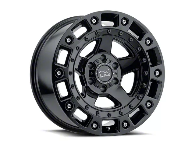 This 18x9.5 Black Rhino Cinco Gloss Black with Stainless Bolts 6-Lug Wheel is completed in a high-quality finish that will make your wheel the envy of everyone. There's a durable clear coat to ward off driving hazards.