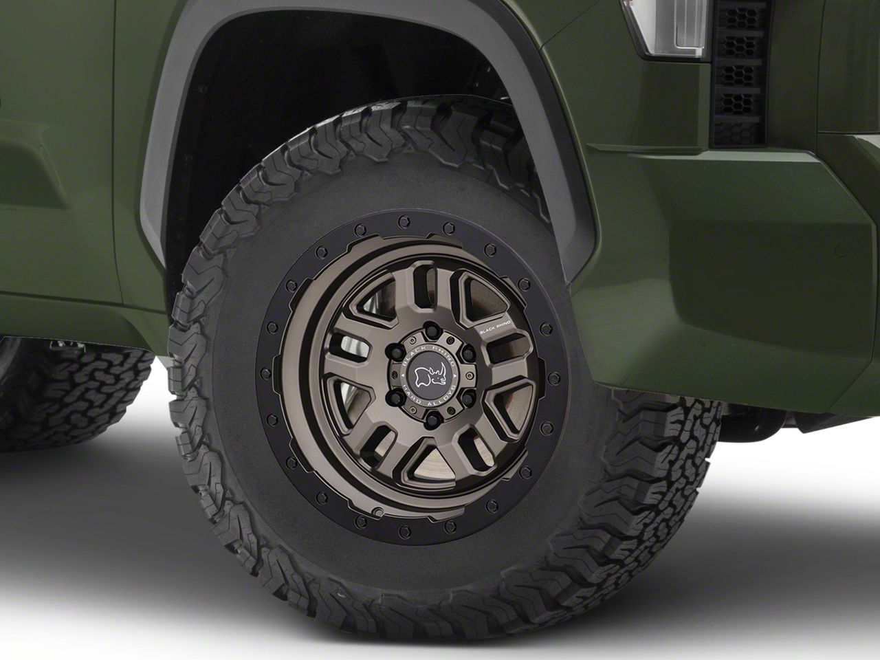 Application. The Black Rhino Barstow Matte Bronze with Matte Black Ring 6-Lug Wheel; 18x9.5; 12mm Offset, with a backspace of 5.723 Inch, 145.4mm and a bolt pattern of 6 x 139.7mm (6 x 5.5-Inch), is designed to enhance alignment and stability for a smooth driving experience. Specifically tailored to fit 2022-2026 Tundra models, it ensures a perfect blend of style and functionality. Sold individually, this wheel is an ideal upgrade for your vehicle.