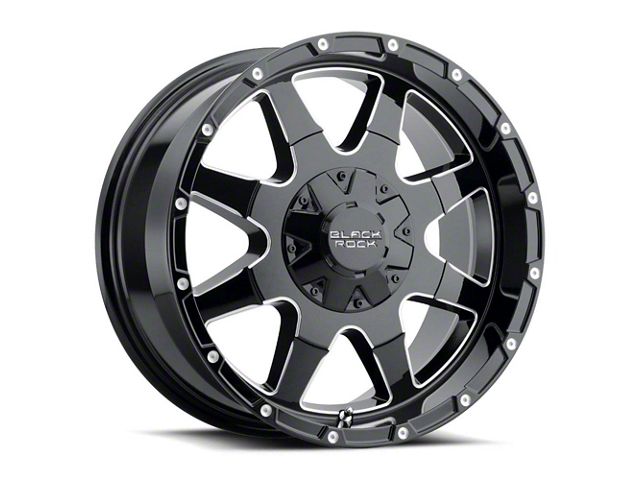 This 20x9 Black Rock Wheels Fury I Gloss Black Milled 6-Lug Wheel is completed in a high-quality gloss black finish with steel milled accents that will create a striking appearance. There's a durable clear coat that protects against driving hazards.