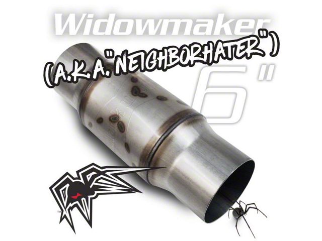 Maximizes Sound Output. The Black Widow Exhaust Neighborhater Series Center/Center Muffler is designed to deliver a crisp, clean, and aggressive exhaust tone that defines performance. With its dual in/out 4-inch design, this muffler eliminates harsh drone while maximizing sound output, making it a standout for performance enthusiasts who want refined aggression and a deep growl.