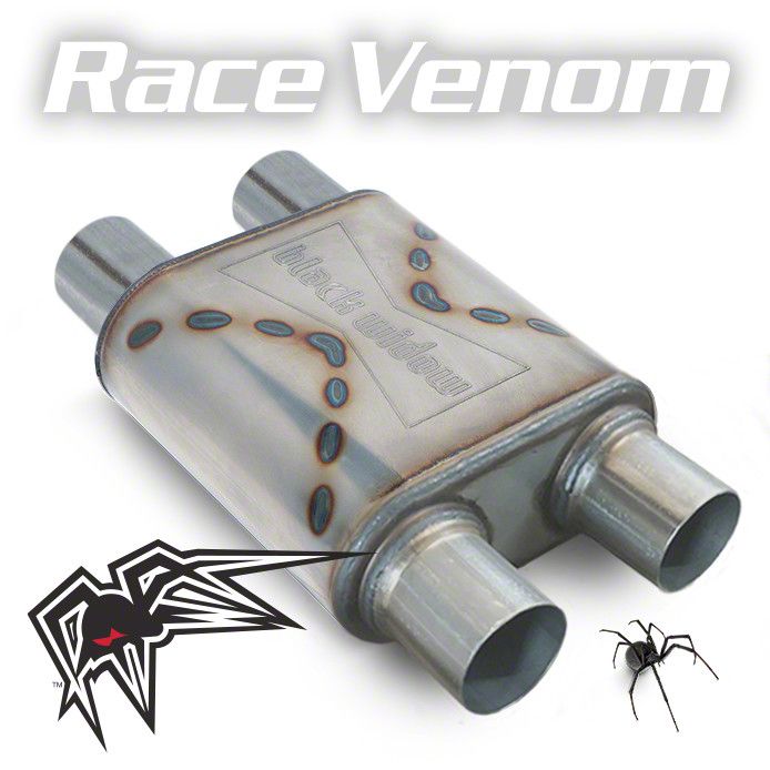 Application. This Black Widow Exhaust Race Venom Series Dual/Dual Muffler fits universal applications (some adaptation may be required).