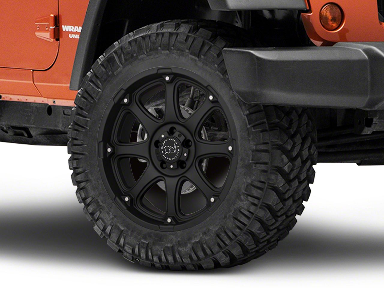Application. This Black Rhino Glamis Matte Black Wheel; 20x9, with a backspace of 4.528 Inch, 115.1mm and bolt pattern of 5 x 127mm (5 x 5-Inch), ensures optimal alignment and driving stability. It is designed to fit 2007-2018 Jeep Wrangler JK models. Sold individually.