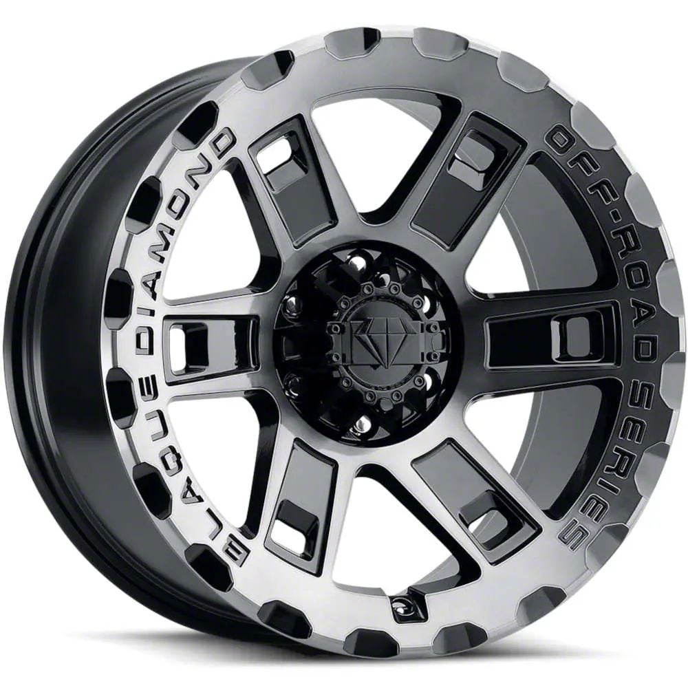 Blaque Diamond Wheels BD-O801 Gloss Black with Machine Face 6-Lug Wheel; 18x9; 1mm Offset. The Blaque Diamond Wheels BD-O801 Gloss Black with Machine Face 6-Lug Wheel; 18x9; 1mm Offset features a sleek and modern design that enhances the overall aesthetic of any vehicle. Its brushed gunmetal finish adds a touch of sophistication and complements various vehicle styles. This wheel's premium construction ensures durability and a robust appearance.
