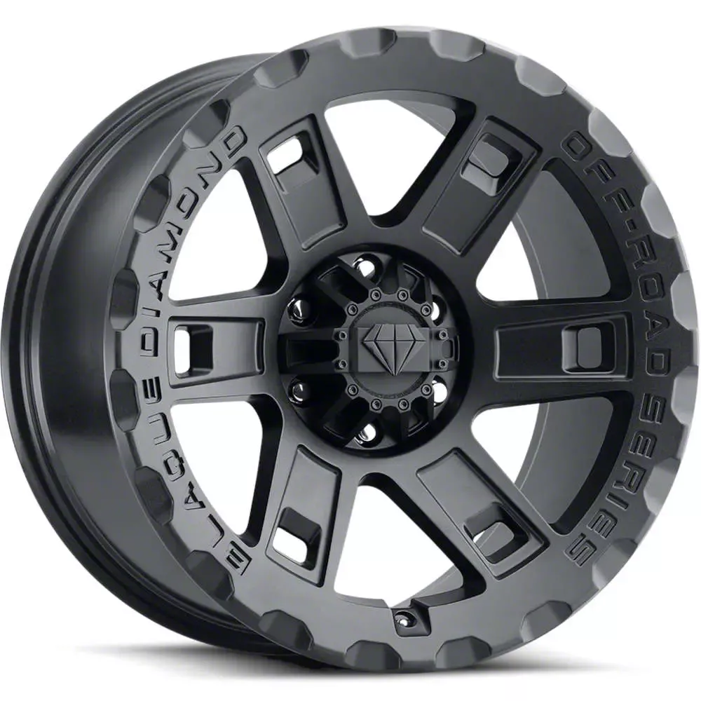 Blaque Diamond Wheels BD-O801 Matte Textured Black Wheel; 17x9. The Blaque Diamond Wheels BD-O801 Matte Textured Black Wheel; 17x9 features a sleek and modern design that enhances the overall aesthetic of any vehicle. Its brushed gunmetal finish adds a touch of sophistication and complements various vehicle styles. This wheel's premium construction ensures durability and a robust appearance.