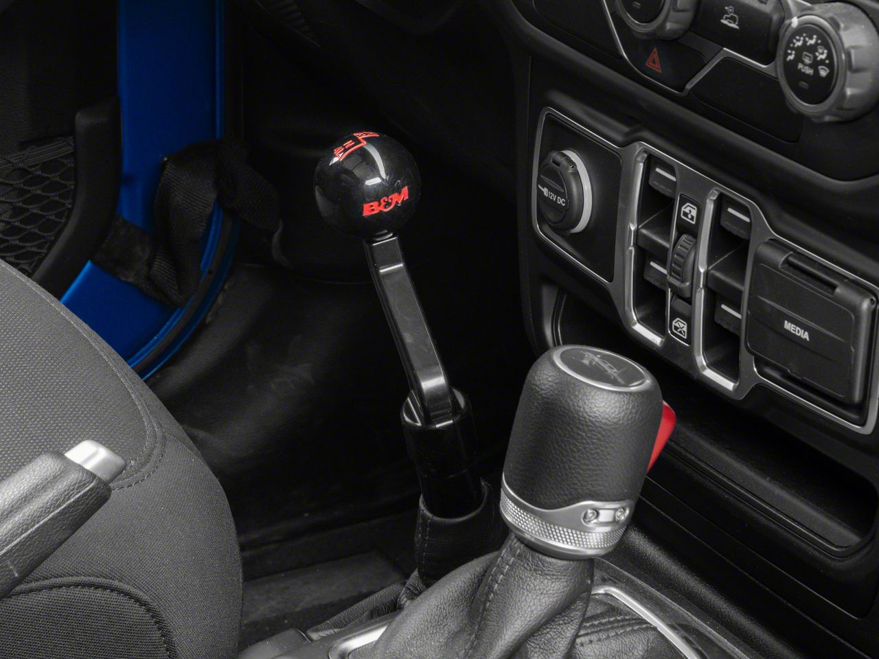 Improved Style and Function. This B&M Transfer Case Shift Handle offers you a great choice if you’re looking to add a customized look to your Jeep Gladiator's interior. This Transfer Case Shift Handle is designed in black with red accents and the official B&M logo. Aside from improving your Jeep’s interior styling, this Handle features improved geometry that relocates the handle position to a higher more convenient location over the factory handle. The new ergonomics provide increased leverage, requiring less effort when shifting in/out of 2 and 4 wheel drive ranges.