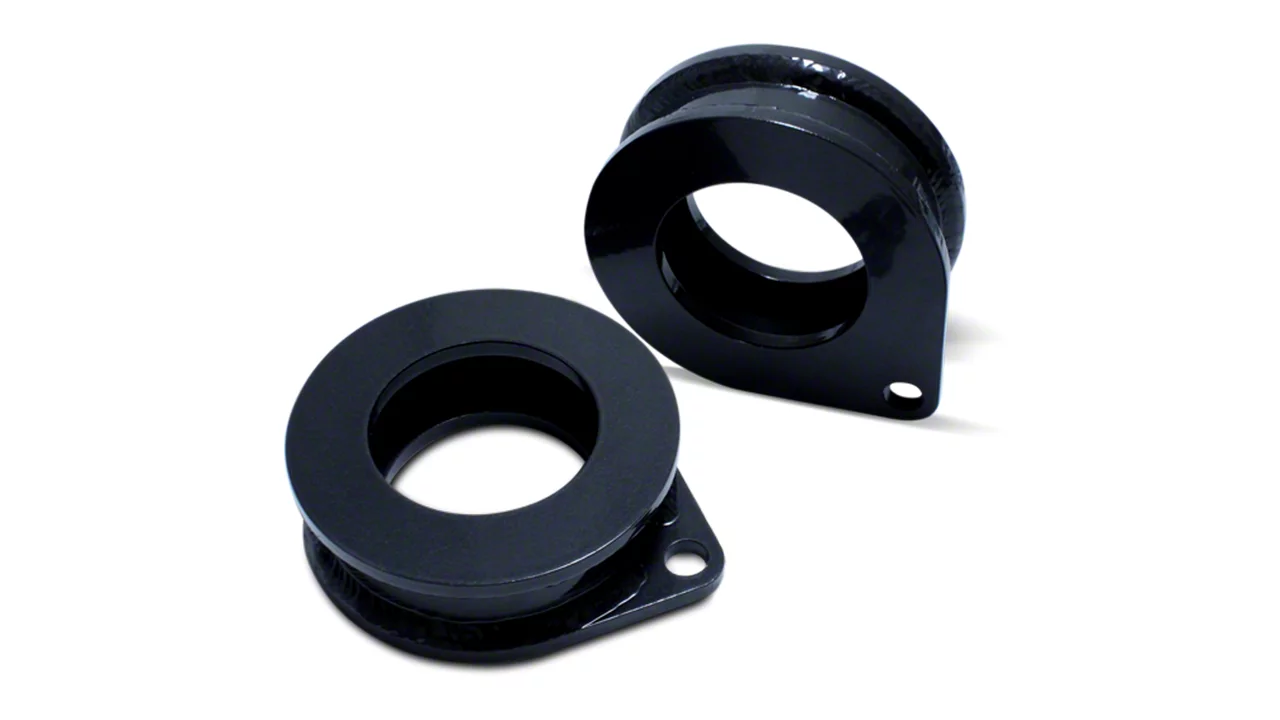 Heavy-Duty Fabricated Steel Strut Spacers. The 2.50-Inch Front Strut Spacers are precision-fabricated from ¼-inch steel for outstanding strength and toughness. To improve durability and service life, it comes with a powder-coat finish to protect against rust and corrosion.