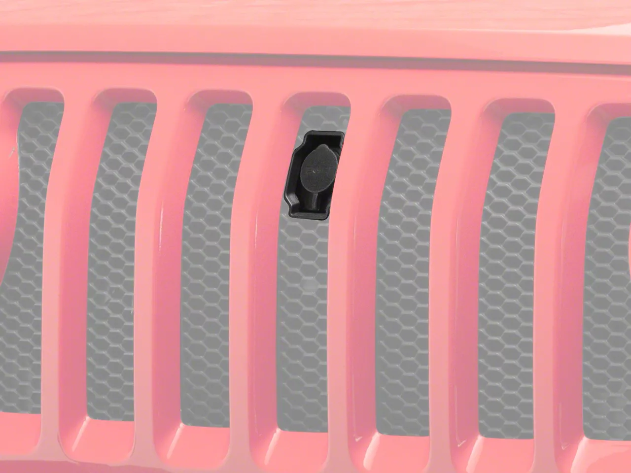 Instead of using the grille insert that comes with the JL Hood Lock, you will need to cut and remove a portion of the stock grille. You can do so by printing off the template that matches your grille below and using the guide to cut and remove the area necessary to fit the lock. Templates
