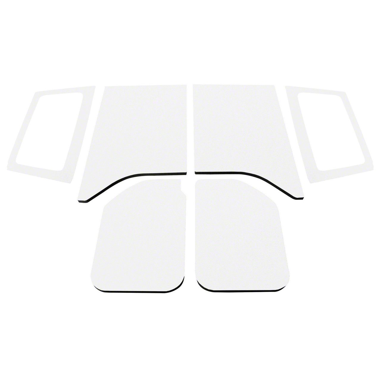 Construction and Appearance. This headliner kit is crafted from high-quality open cell polyurethane foam with a specialized polymer surface treatment for durability and effectiveness. It comes in a white original finish, giving your Jeep’s interior a clean and factory-like appearance.