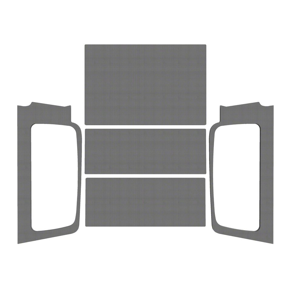 Aesthetics and Acoustics. If talking with each other or listening to music while riding your Wrangler TJ Unlimited is next to impossible due to excessive noise, there’s an easy solution for that. Check out the Boom Mat Sound Deadening Headliner Kit in Gray Original Finish. This 5-piece headliner kit minimizes outside noise and vibrations and can reduce noise levels from 3 to 4 decibels, enhancing the internal acoustics of your Jeep and making music listening and conversations possible.