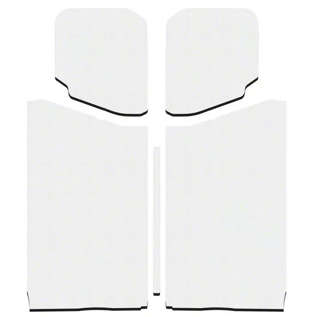 Construction and Features. Finished in white for a clean, factory-style look, this headliner is crafted from high-quality materials that provide both sound dampening and thermal insulation. The multi-piece design ensures full coverage, offering a quieter and more temperature-stable interior.