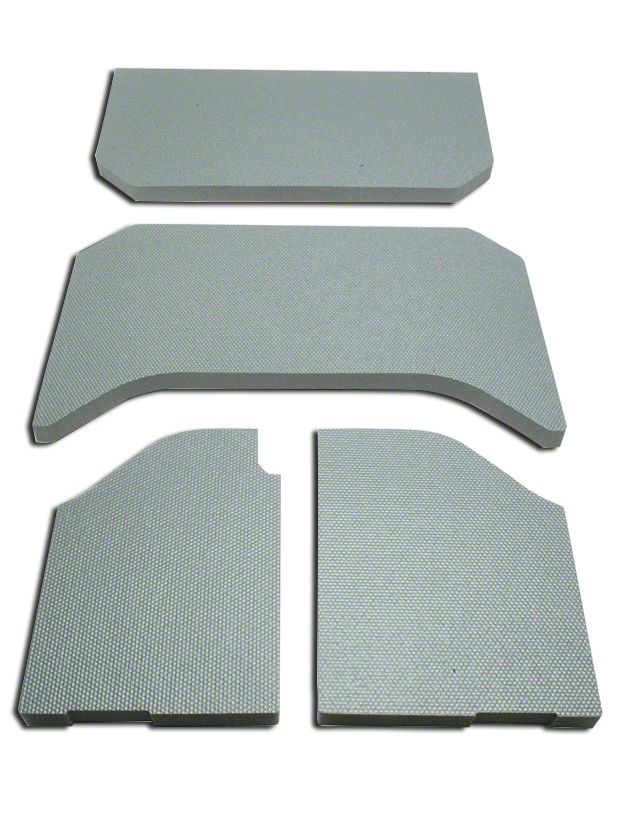 Noise Control. Create a more ideal in-cab environment in your Jeep by reducing noise levels with the Boom Mat Sound Deadening Headliner. Softening the harsh contrasting white of your factory hardtop, this four piece Gray Headliner Kit will reduce noise levels by 3 to 4 decibels in your cab. Such noise reduction will improve your Jeep's interior acoustics to provide a more comfortable setting for conversation while traveling on noisy highways as well as off-road trails.