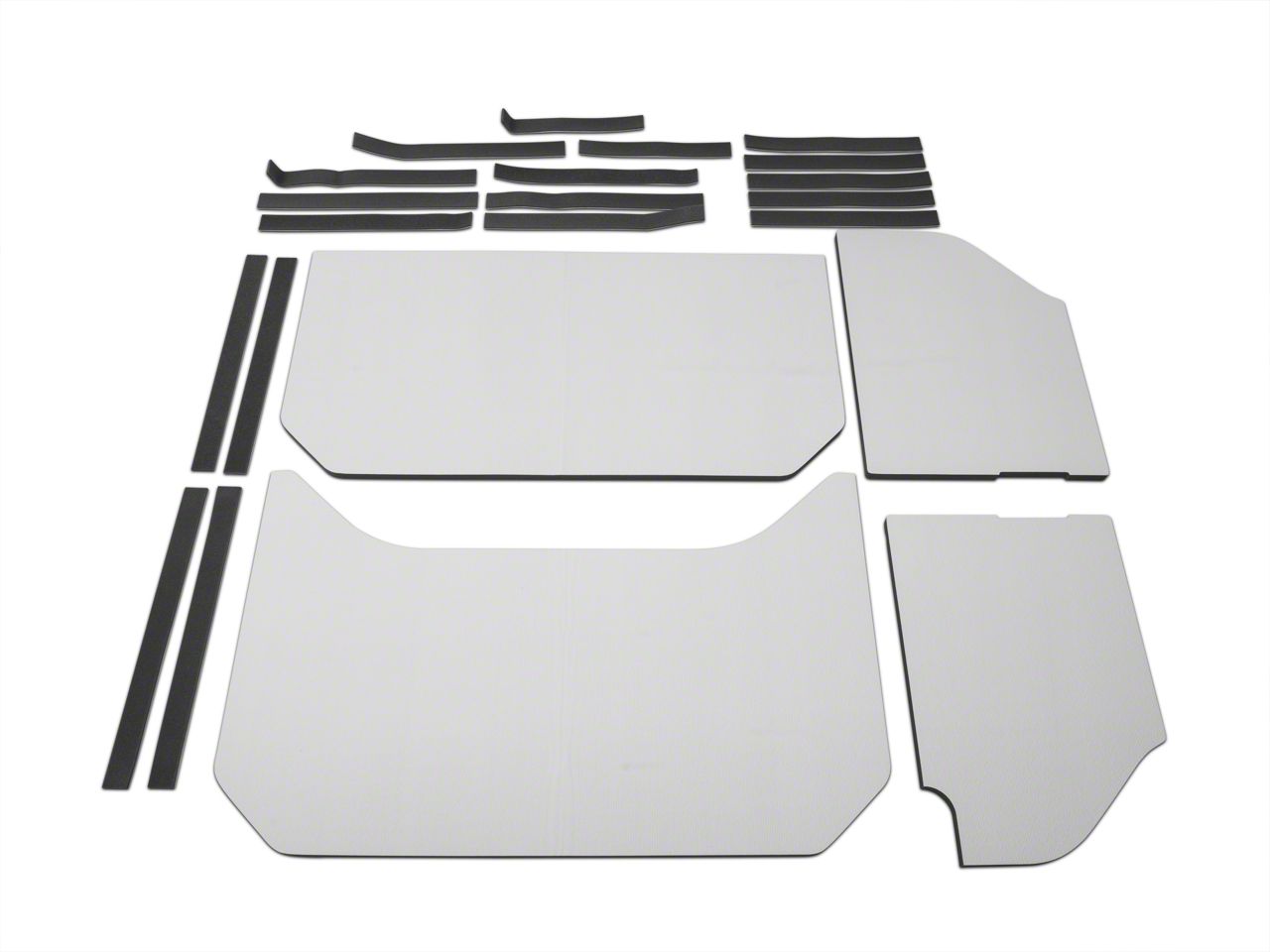 Noise Control. Enjoy those longer rides in your Unlimited by reducing noise levels with the Boom Mat Sound Deadening Headliner. This four piece white headliner kit reduces noise levels from 3 to 4 decibels in your cab to improve your Jeep's interior acoustics and provide a more comfortable setting for travel on and off road.