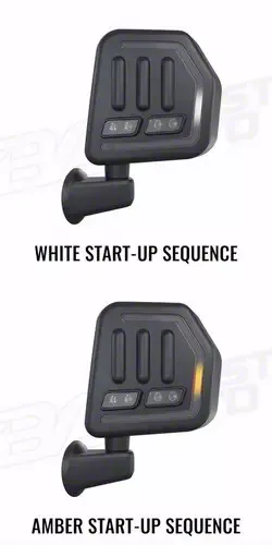Sequential Turn Signal Technology. The integrated sequential turn signals on the Boost Auto Parts Trail Mirrors with Amber Running Light and Sequential Turn Signal provide a modern, premium look while improving safety. Instead of a simple blink, the LEDs illuminate in a dynamic sweeping motion that clearly signals your intentions to other drivers, adding both style and function to your Jeep’s exterior.