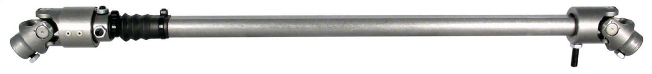 • Smooth telescopic shaft easily absorbs flex between the body and chassis. Heavy duty billet steel universal joints provide a precise zero play connection from steering column to steering box. Made in the USA.
