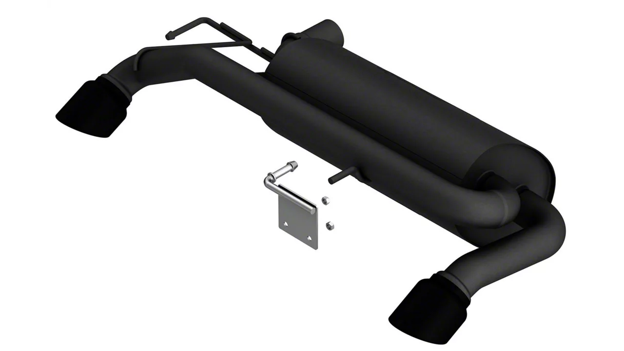 Premium Functional Design. Crafted from four-inch black coated T-304 stainless steel, the Borla S-Type Axle-Back Exhaust features a 2.5-inch inlet that flows seamlessly into a 2.75-inch muffler inlet, wrapping up in two dual 2.5-inch tailpipes and finished with sleek black tips. But the best part is the sound - the S-Type level is perfect for those who desire an aggressive yet refined engine roar.