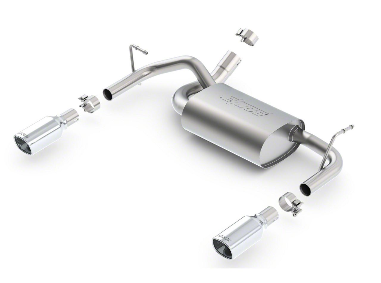 Step Up Your Sound. Your Jeep Wrangler JK was never meant to go unnoticed. When you roll out in your rig, you want to turn heads. The roar of your exhaust is supposed to get the job done, but the factory sound is disappointing. This Borla Touring Axle-Back Exhaust is known for its low, powerful exhaust pitch. Install it to get that roar your rig is made for.