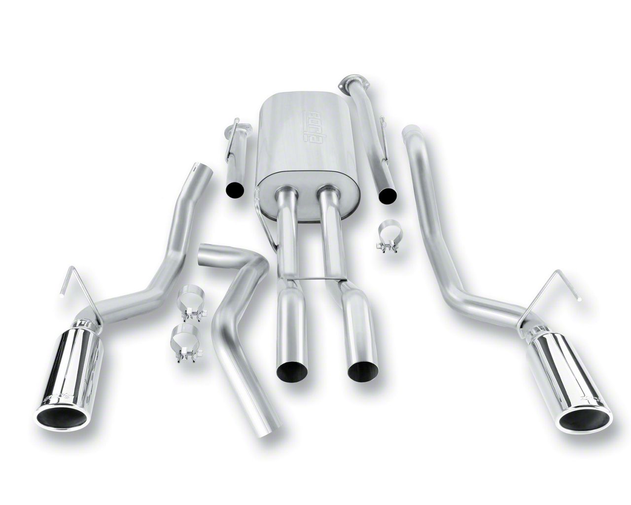 Increased Performance. The performance boost that the Borla Touring Dual Exhaust System with Polished Tips gives your truck comes from its mandrel-bent exhaust piping. These pipes allow a freer and more expedient route for exhaust gases to be vented out from your vehicle, allowing it to work more efficiently. This results in increased horsepower and torque as well as better fuel economy for you.