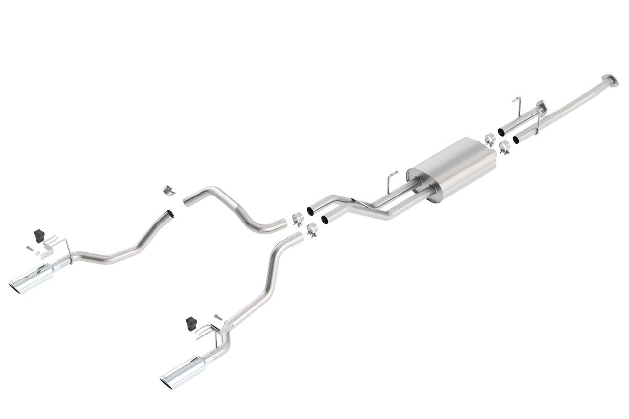 Heavy-Duty Stainless Steel Construction. All Borla exhaust system products are made out of only the highest quality, T305 stainless steel, and this Borla Touring Dual Exhaust System with Polished Tips is no exception. Thanks to the inherent durability and corrosion-resistant nature of stainless steel, you can bet that this exhaust system can endure even the most extreme of driving conditions without failing. The mandrel-bent pipes and smooth welding also helps up the aesthetic look of this system.