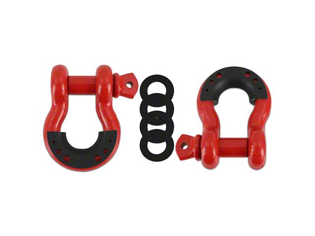 Bright Red. With a bright red finish, these D-ring shackles add a touch of style to your vehicle's exterior, while also providing superior corrosion resistance to withstand the elements. They feature a 3/4-inch diameter pin that fits most standard hitch receivers, making them perfect for universal applications.