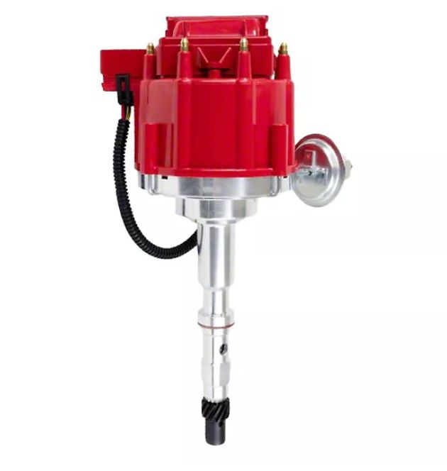 Durable Ignition Solution. The Bous Performance HEI Ignition Distributor with 66K Coil; Red Cap is engineered to provide reliable ignition performance for your Jeep CJ7. This product efficiently distributes spark energy to the engine cylinders, ensuring smooth combustion and optimal engine function. It is essential for maintaining vehicle performance and drivability in demanding conditions.