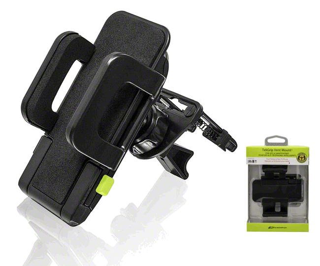 Easy Device Access. This TekGrip Vent Mobile Device Mount lets you attach a phone, GPS, or other portable devices to your Wrangler's vents. This takes up less space on the dash while keeping it easily within reach. This mount allows full access to your device's controls without blocking the AC or heat. Also, this mount allows you to rotate your device 360 degrees, letting you view it the way you want it.