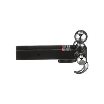 The bROK tri-ball with hook enables towing of multiple trailer coupler sizes. This bROK mount provides three different sized hitch balls welded on the 2-in steel Shank. Chrome plated balls and powder coated Shank provide years of reliable service.