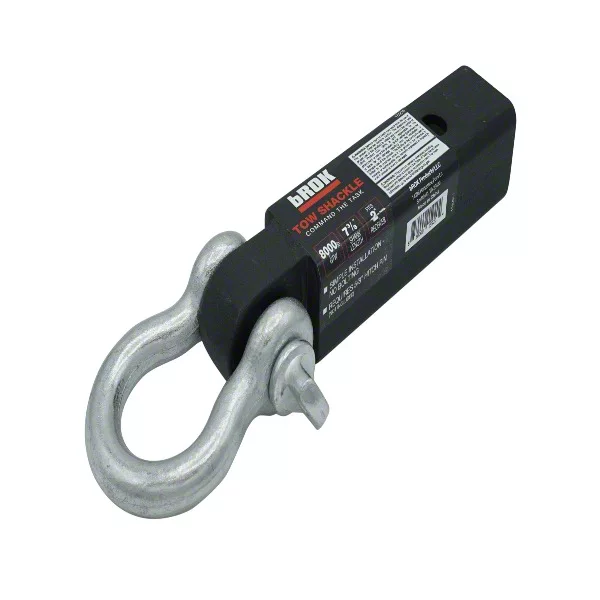 Reliable Tow Recovery. The bROK 2-Inch Receiver Hitch Tow Shackle; 8000 lb. is a robust accessory designed to enhance vehicle recovery and towing capabilities. It functions as a secure connection point for tow straps and ropes, facilitating safe and effective towing or rescuing of vehicles. Its importance lies in providing a dependable and versatile attachment option for trucks and Jeeps when recovering stuck or disabled vehicles.