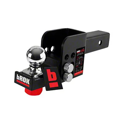 Adjustable Towing with Compact Storage. The bROK 2-Inch Receiver Flip Mount Adjustable Hitch Ball Mount with 2-Inch Ball offers versatile towing capability with a convenient flip-up design for easy storage when not in use. With a 3.5-inch drop for height adjustment and a 7,500 lb. towing capacity, this mount is ideal for a range of trailer and towing applications.