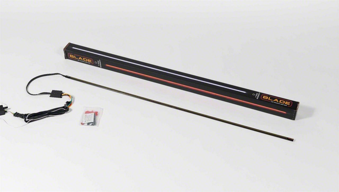 Advanced Tailgate Lighting Solution. The Putco Blade LED Tailgate Light Bar adds a stylish and functional upgrade to your vehicle's rear lighting system. With a length of 48 inches, this light bar syncs with your tail lights and provides bright amber, red, and white light output. Its matte black finish housing offers a sleek appearance while being compatible with blind spot and trailer detection systems, making it ideal for enhanced visibility and safety.