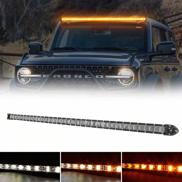 Multi-Mode Trail Illumination. This 50-Inch LED Light Bar offers powerful and versatile lighting performance for off-road enthusiasts. Designed for 2021–2026 Ford Bronco models, it delivers six dynamic lighting modes to adapt to changing trail and weather conditions. With bold styling and serious light output, it's the perfect addition to elevate your Bronco's nighttime visibility and rugged appearance.