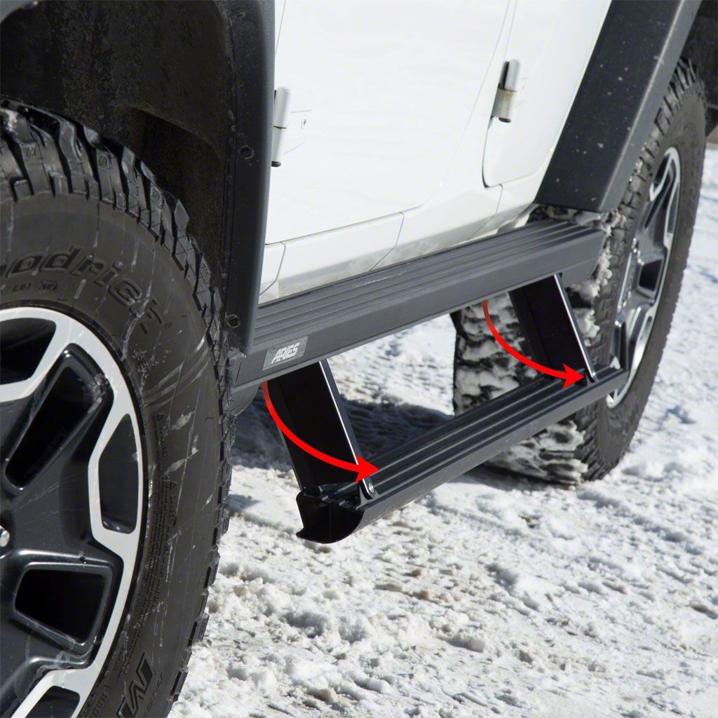 Power. The 3-inch powered step automatically drops 8 inches when the door opens. The integrated control module notices obstructions and there's a single rotary motor for quiet operation. Housing shields the retractable step, pivot points, and electronics.