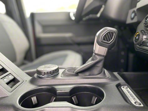 High-Quality Accent Trim. This Domed Carbon Fiber Automatic Shift Knob Insert Accent Trim is ideal for those who want to personalize their shift knob. This Accent Trim is made of high-quality materials and will complement your Ford Bronco perfectly.