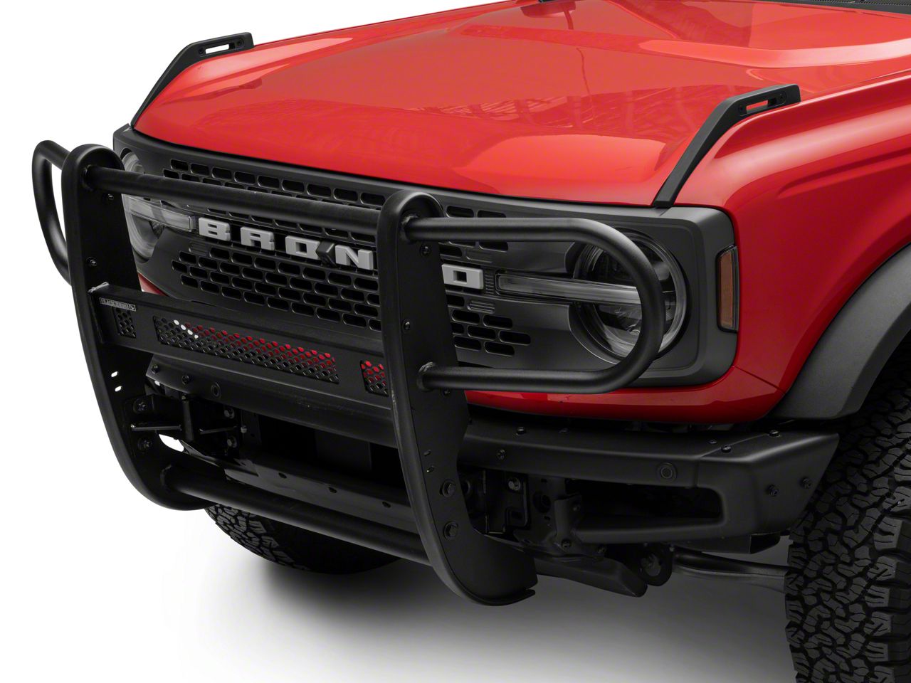 Long-Lasting Built. Enhance your Bronco's front-end protection and style (excluding Raptor models) with the Beacon Grille Guard. This grille guard boasts a modular composition, allowing for a customized look and functionality. Crafted from high-grade material, it promises durability and strength against impacts. A corrosion-resistant E-coat primer underlies the durable top black powder-coat finish, ensuring long-lasting resistance to the elements and rust.