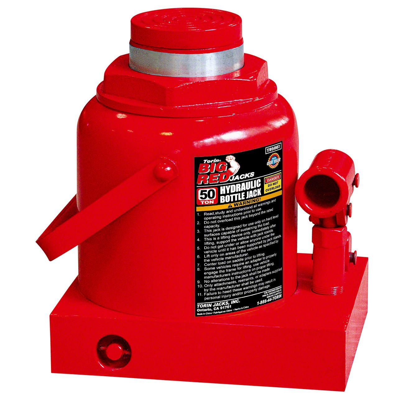 Hydraulic Bottle Jack. If you are looking for an easy to carry bottle jack, than this Big Red Hydraulic Bottle Jack; 50-Ton Capacity is for you. Designed for convenience and reliability, this Hydraulic Bottle Jack features a compact heavy-weight design made from quality steel. It has a lift range of 9-5/16 to 14-1/16 inches with a capacity of 50 tons, while the slide-action pressure pump makes the lifting seem effortless.