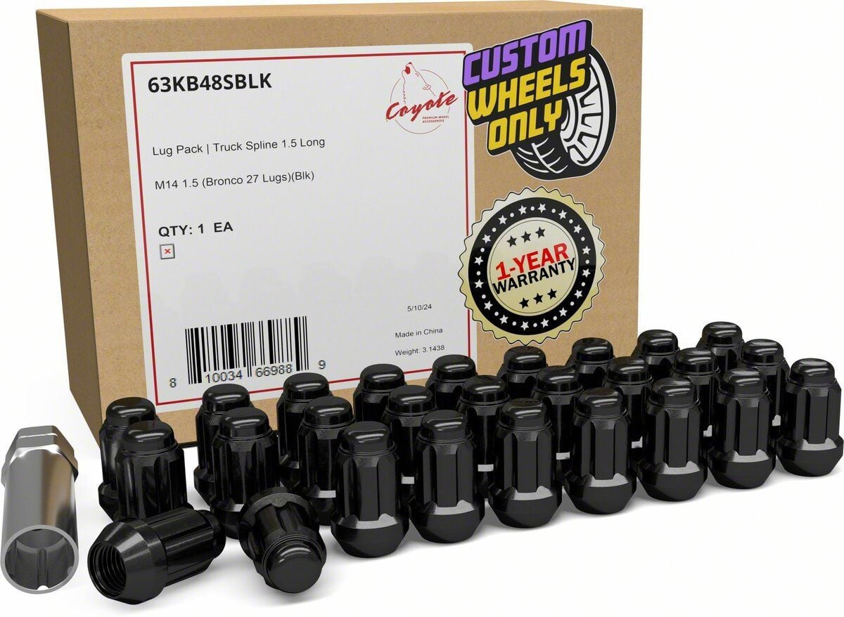 Application. This Black 6-Spline Lug Nut Kit fits 2022-2026 Bronco Raptor models. Some adaptation may be required.