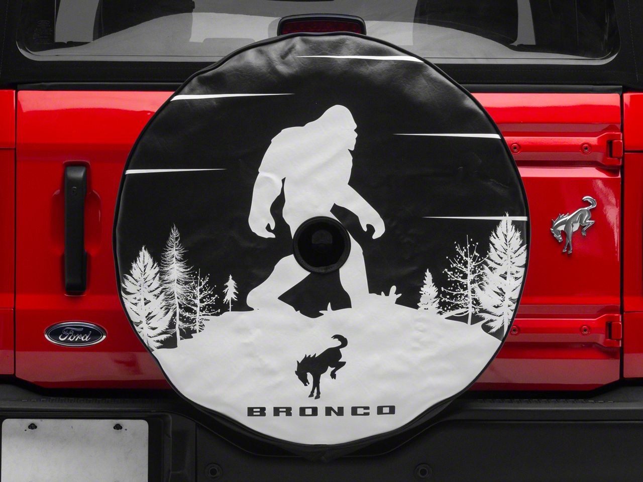 Application. The Bronco Sasquatch Spare Tire Cover is designed to fit 2021-2026 Bronco models.