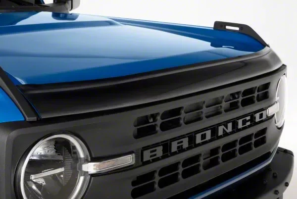 Rugged Protector. If you're looking for a rugged and stylish way to keep your 2021-2026 Ford Bronco protected from the elements, look no further than the Buggard Smoked Hood Protector. This low-profile design is made in the USA from durable 3M Dual Lock material, which features a 3D molded design that looks great and helps keep bugs, stones, mud, and other potentially damaging elements away from your vehicle.