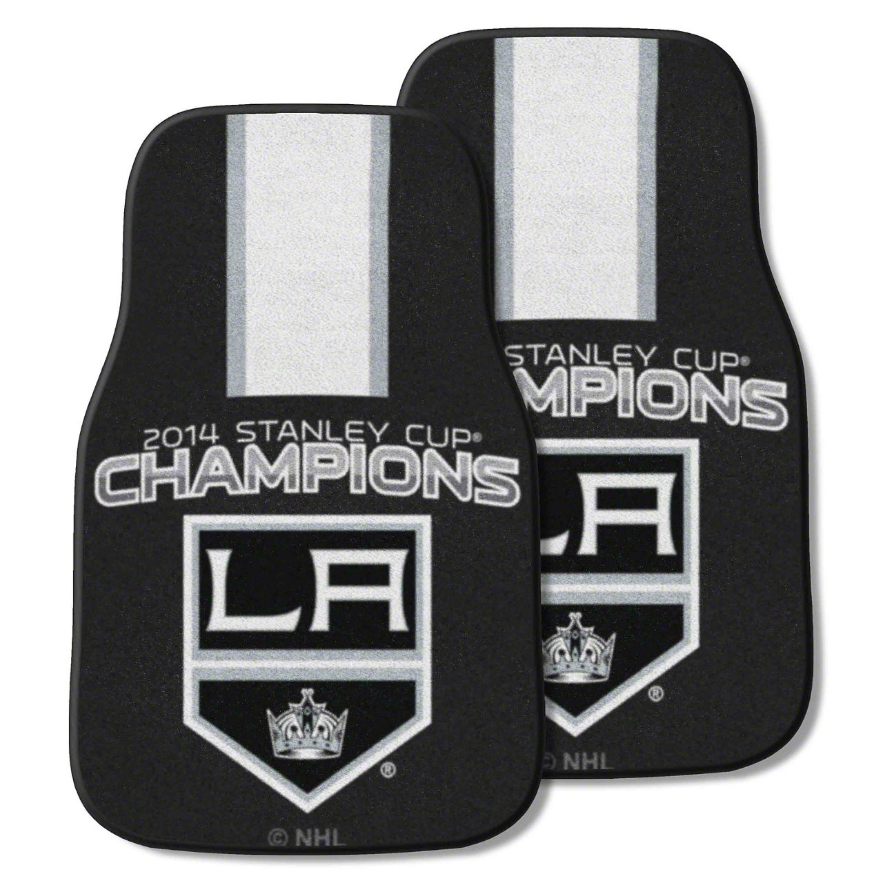 Carpet Front Floor Mats with Los Angeles Kings 2014 NHL Stanley Cup Champions Logo; Black (Universal; Some Adaptation May Be Required)