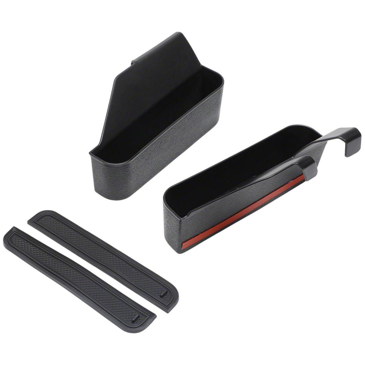 Construction and Appearance. Built from durable ABS plastic, these storage boxes are finished in textured black for a sleek, factory-style appearance. The included pads help reduce noise from shifting items and prevent scratches to both the box and stored accessories. Their OE comparable construction ensures long-lasting use and a reliable fit in your interior.